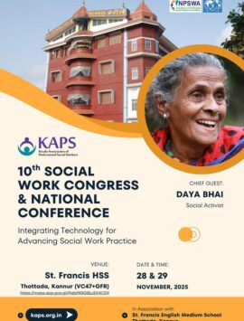 Kerala Association of Professional Social Workers (KAPS) is the united voice of trained social workers across Kerala. Registered under the Travancore-Cochin Charitable Societies Act, KAPS is committed to promoting excellence, integrity, and unity in the social work profession.
