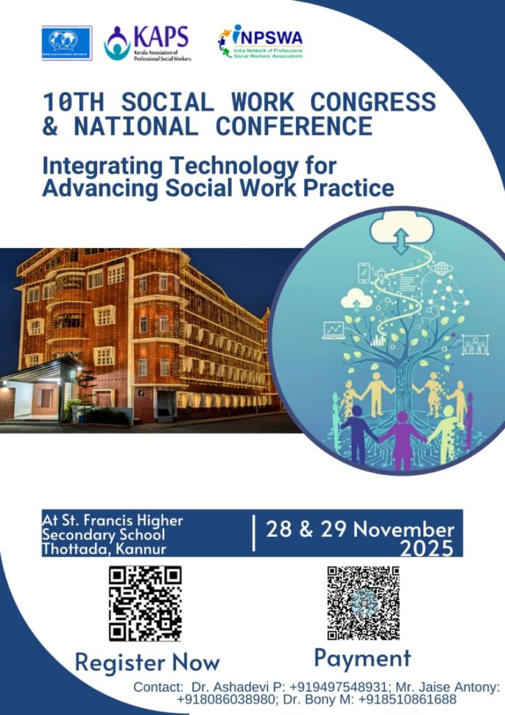 The Social Work Congress, organised annually by the Kerala Association of Professional Social Workers (KAPS), is a flagship gathering of practitioners, educators, researchers, and students from across the state and country. Serving as a vibrant platform for academic exchange and professional collaboration, the Congress fosters dialogue on emerging trends, innovations, and challenges in the field of social work.